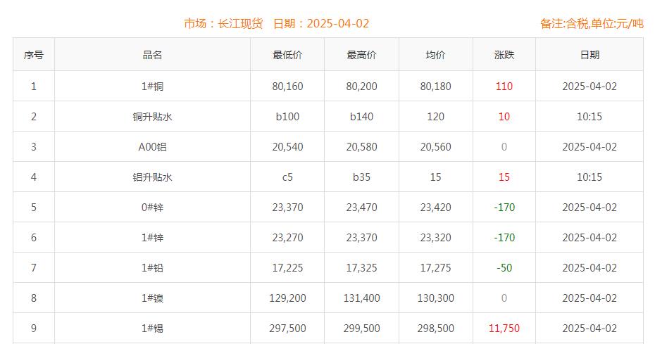 2025年4月2日铜价
